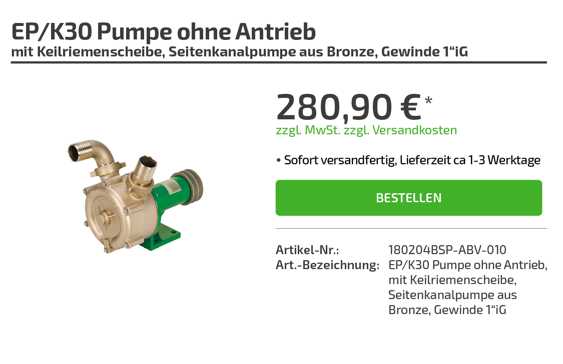 EP/K30 Pumpe ohne Antrieb, mit Keilriemenscheibe, Seitenkanalpumpe aus Bronze, Gewinde 1"iG