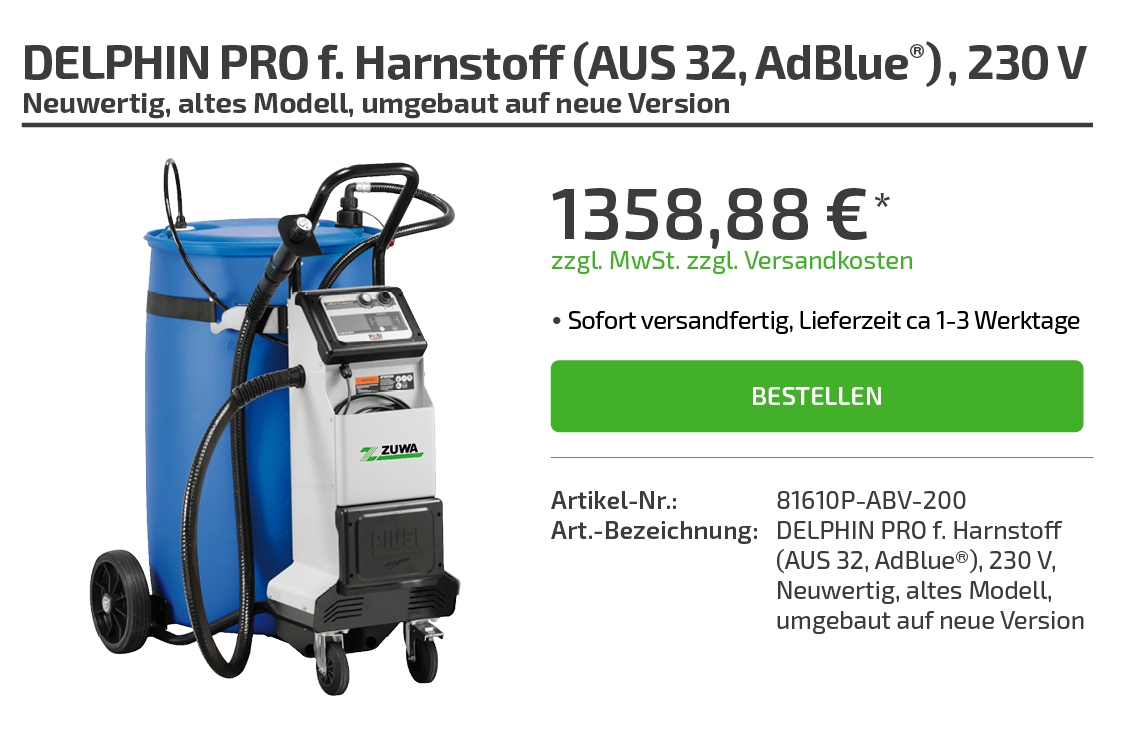 DELPHIN PRO f. Harnstoff (AUS 32, AdBlue®), 230 V, neuwertig, altes Modell, umgebaut auf neue Version