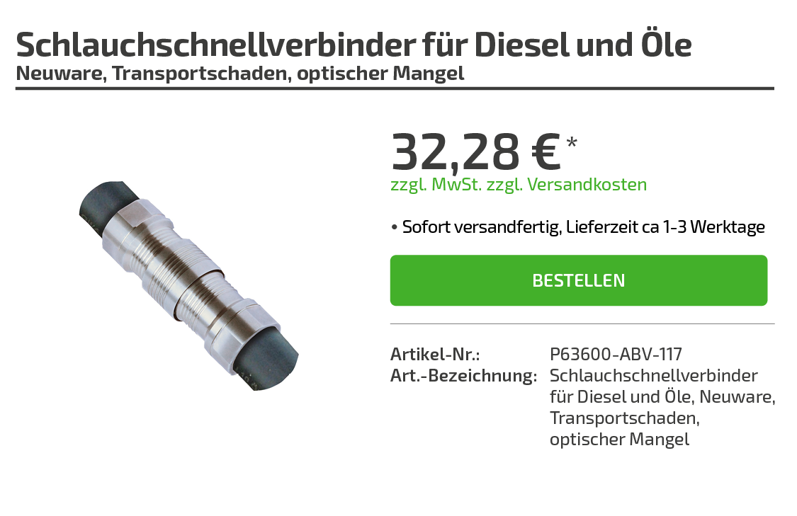 Schlauchschnellverbinder für Diesel und Öle Neuware, Transportschaden, optischer Mange